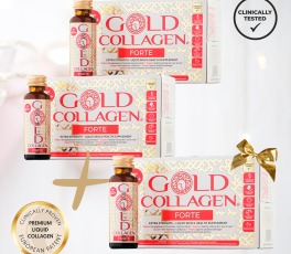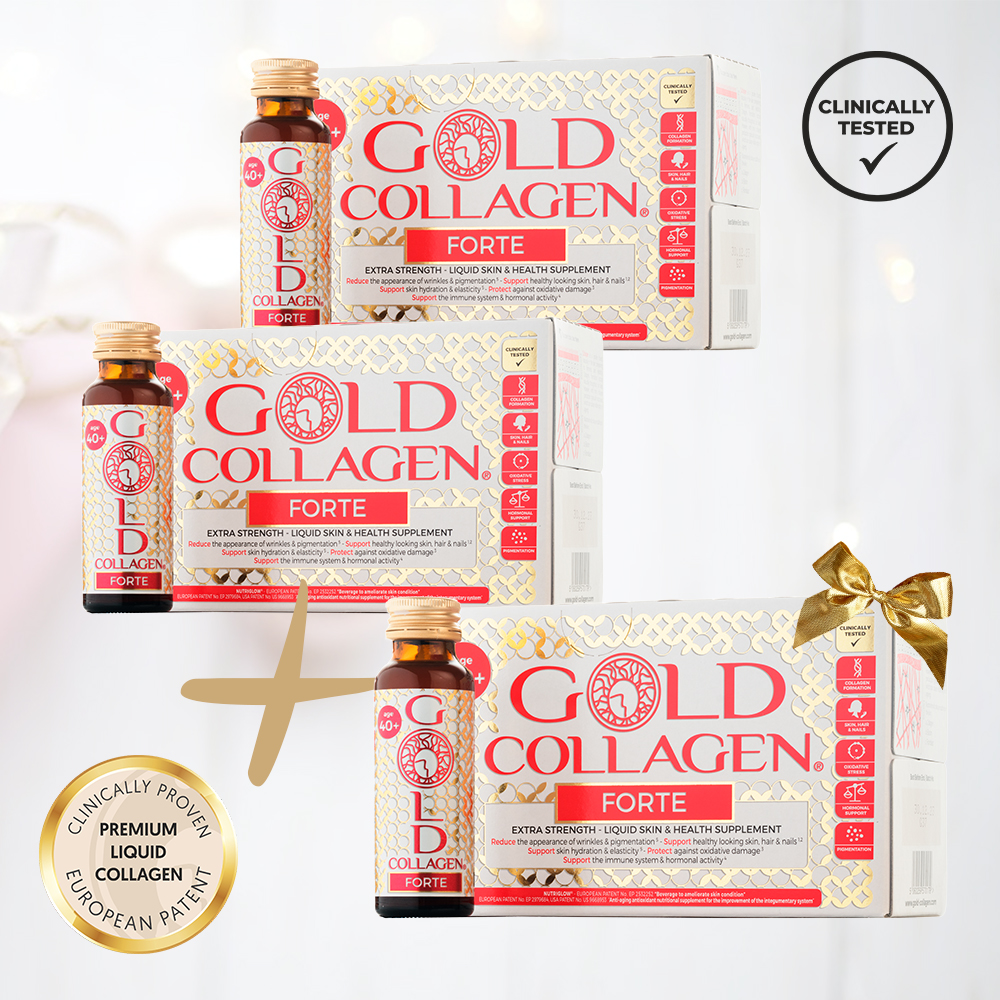 Teraz jest najlepszy moment, aby wypróbować rekomendowaną miesięczną kurację płynnym kolagenem Gold Collagen FORTE. Gold Collagen FORTE to najpopularniejszy kolagen w płynie. Zawarte w nim substancje pomagają utrzymać elastyczność skóry, doskonale ją nawilżają, dzięki czemu staje się gładsza, a istniejące zmarszczki są mniej widoczne. Ten kolagen do picia przeznaczony jest również na włosy, paznokcie oraz poprawia ogólne samopoczucie. Niska masa cząsteczkowa zapewnia szybkie i łatwe wchłanianie substancji aktywnych. Gold Collagen FORTE+40 to jeden z kolagenów do picia Gold Collagen o najmocniejszym działaniu. Jego skuteczność została potwierdzona badaniami klinicznymi. Ma bardzo przyjemny smak.